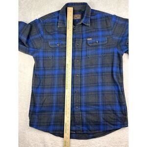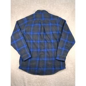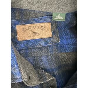 Orvis Blue Check Heavy Cotton Flannel Pockets Button Shacket Shirt Men’s Size LT
