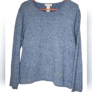 Orvis Blue Heathered Cotton Sweater Pull over Round Neck Size Large Casual Warm