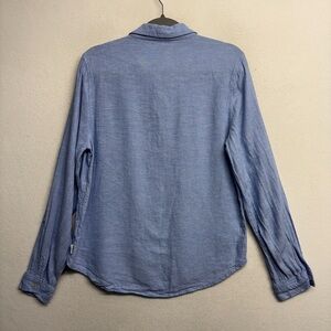 Orvis Blue Linen Blend Button Down Shirt S Women's Roll Sleeve Collared