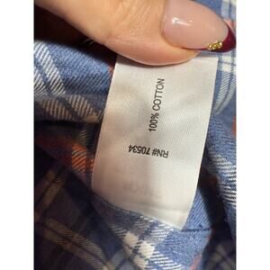 Orvis Blue Orange Plaid Flannel Button Down Shirt Size L
