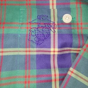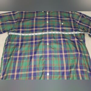 This Orvis custom embroidered shirt showcases a classic plaid design in blue and green, perfect for a laid-back look. Crafted from comfortable fabric, it features long sleeves and a traditional collar, making it ideal for everyday wear.
