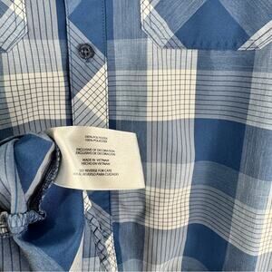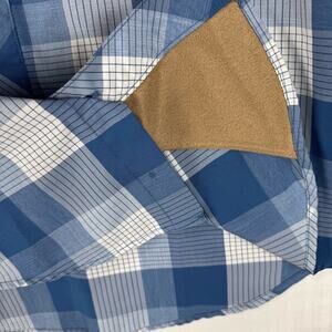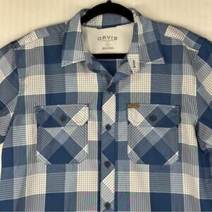 Orvis Blue/White Plaid Short Sleeve Button-Up Men Tech Shirt Size Medium UPF 30