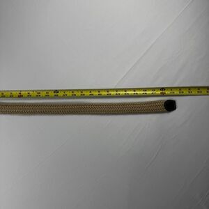 The Orvis Braided/Woven and Leather Made in USA Belt in size 44 is a stylish and durable accessory for men. Made with leather and cotton materials, this beige belt features a classic Western and outdoor theme, making it versatile for dress or casual outfits. With its braided/woven design and showcasing the brand's quality craftsmanship, this belt is a timeless piece that can be proudly worn with pride, reflecting American style and heritage.