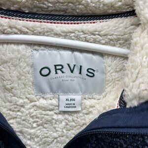 Orvis Brighton Sweater Men Extra Large Blue 1/4 Zip Sherpa Lined Pullover Fleece