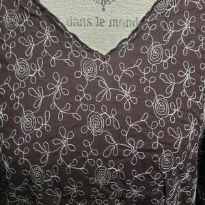 Orvis Brown Floral Embroidered Pull Over V Neck Long Sleeved Shirt Blouse XL