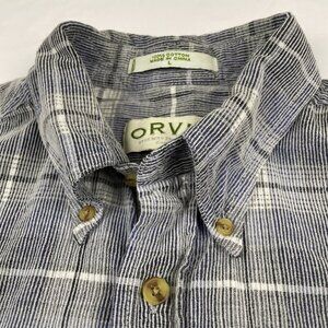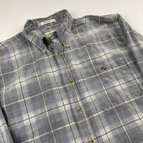 Orvis Button Down Corduroy Shirt Men’s L Blue Plaid Classic Cotton