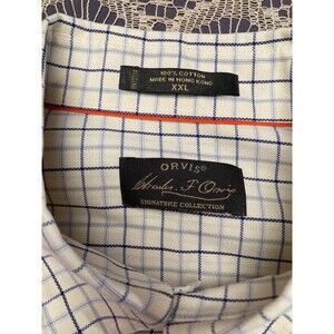 Orvis Button Down Shirt Plaid Vintage 90s Windowpane Blue Cream Size XXL