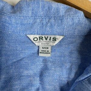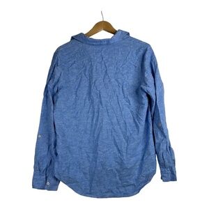 Orvis Button Front Shirt Womens Large Baby Blue Linen Rayon Roll Tab Sleeves S
