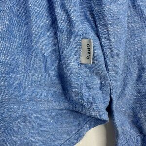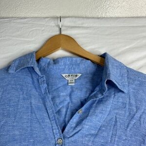 Orvis Button Front Shirt Womens Large Baby Blue Linen Rayon Roll Tab Sleeves