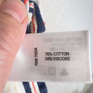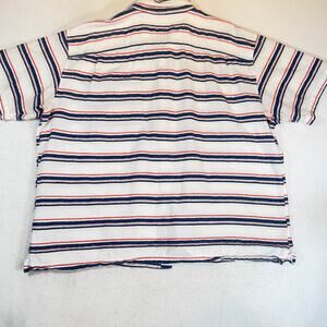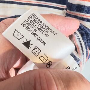 Orvis Button Shirt Men's XXL White Blue Orange Stripe Short Sleeve Linen Feel
