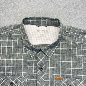 Orvis Button-Down Shirt Mens 2XL Gray White Windowpane Plaid Short Sleeve