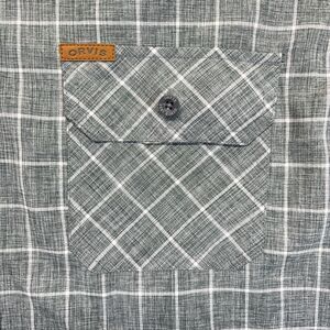 Orvis Button-Down Shirt Men’s 2XL Gray White Windowpane Plaid Short Sleeve