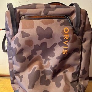 Orvis laptop bag in camp color. Shoulder carry, sizing works as personal item for airlines. Great for weekend travel. Separate pocket for laptop.