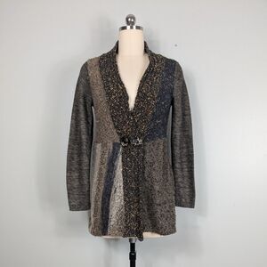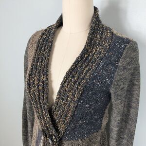Orvis Cardigan Sweater S Brown Duster Long Chunky Patchwork Artsy Boho Y2K