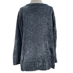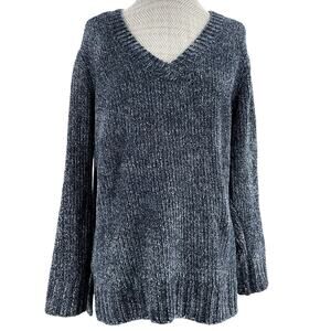 Orvis Chenille Sweater Steel Gray Blue Relaxed Soft Cozy V-Neck Shiny Size M
