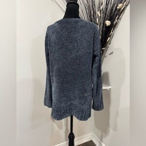 Orvis Chenille oversized V-neck Pull over blue/gray Sweater Size Small