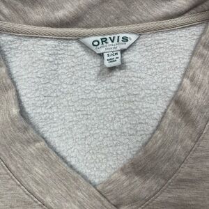 Orvis Classic Collection Beige V-Neck Pullover Sweatshirt Fleece Lined Small