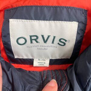 Orvis Classic Collection Women's Navy Blue Down Puffer Vest Orange Accents XL