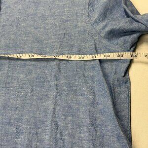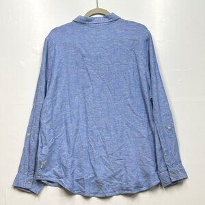 Orvis Classic Linen blend Blue Button-Up Shirt roll tab READ Long Sleeve