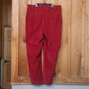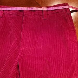 Orvis Corduroy Mid Rise Flat Front Bootcut Dress Pants, 36 X 30, Wine Red in Good Condition with extra buttons attached on inside (see last pic).