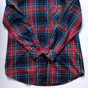 Orvis Cotton Blend Long Sleeve Plaid Button Up Shirt Red Black Blue Size 10