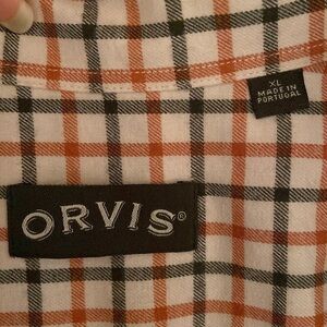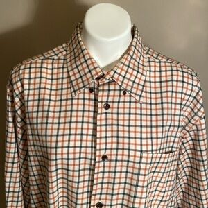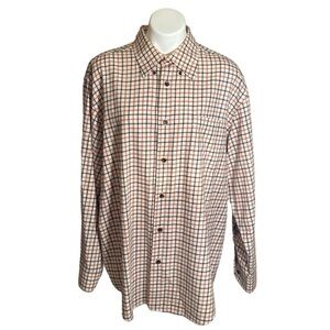 Orvis Cream Plaid Wool Cotton Buttoned Down Dress Shirt Size XL Career Classic