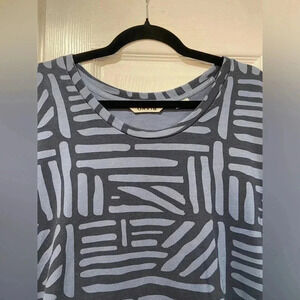 Orvis Crew Neck Short Sleeve Geometric Pattern Blue Tee Shirt Dress Size L