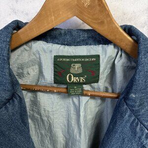 Orvis Denim Blazer Jacket Mens M 21.5x30 Casual Workwear Elbow Patch Cotton Y2K