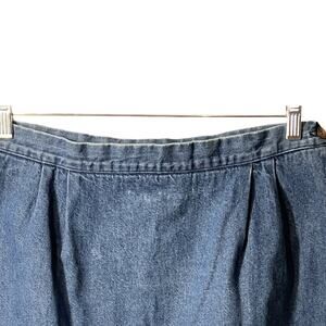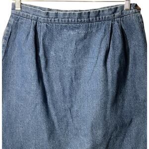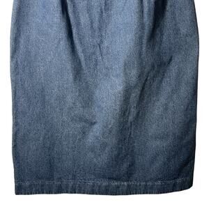 Orvis Denim Skirt Womens 31" Waist Blue Midi Side Zip Back Button Hem Pockets