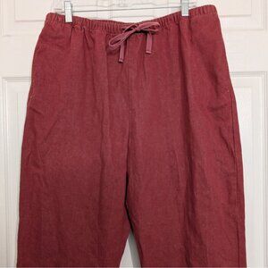 Orvis Drawstring Pants Womens Petite Size Large Red Cotton Pockets Casual