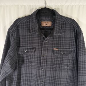 Orvis Flannel Button Up Men's XXL Grey Black Plaid Heavyweight Pockets Collared