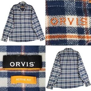 Orvis Flannel Shirt Men’s Size Large L Blue Plaid Cotton Button Up Long Sleeve