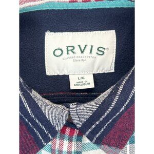 Orvis Flannel Shirt Womens Large Blue Red Plaid Shacket Lined