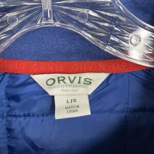 Orvis Fleece Jacket Mens L Blue Quilted Front Full Zip Pockets Lightweight Hikin