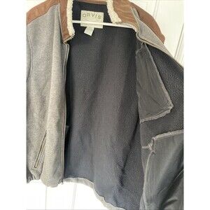Orvis Fleece Zip Vest Sherpa Collar Faux Leather Shoulder Brown Mens XXL