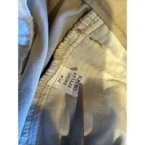 The Orvis Foothills OR5478 Suede Trim Zip Cargo Pants in Men's size 44 are designed for outdoor activities such as hiking, trail travel, and other outdoor adventures. Made from 100% cotton in a tan beige light khaki color, these pants feature a zipper closure and pleated front for a comfortable fit. The cargo style with suede leather trim pockets adds both functionality and style, making these pants a versatile choice for those who enjoy spending time in nature.