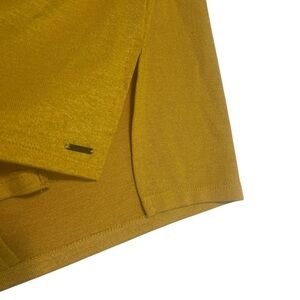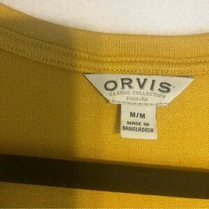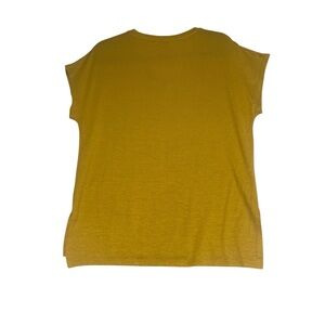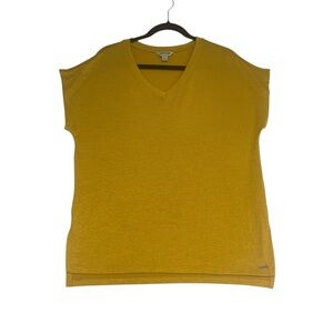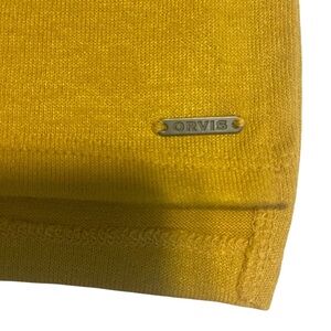 This Orvis top features a stunning gold color with a boxy relaxed fit, perfect for casual outings. The short sleeves and simple V-neckline add a touch of elegance to its comfortable design.
