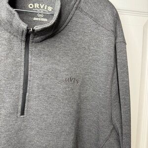 Stylish Orvis quarter-zip pullover in gray. Perfect for casual wear.