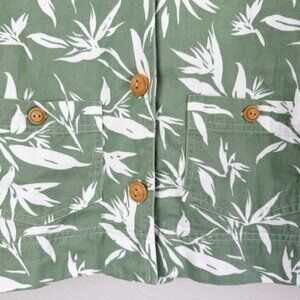 Orvis Green Leaf bamboo Print button denim jacket 12