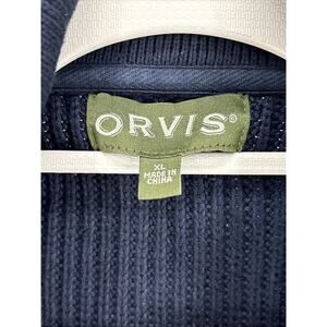 Orvis Hawker Twill Cardigan Sweater Mens XL Blue Cotton Field Utility Ribbed
