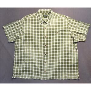 Orvis Hemp Blend Short Sleeve Button-Up Shirt Outdoor Green Plaid Mens 2X Casual