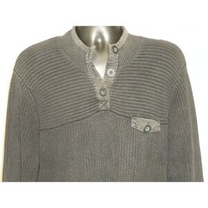 Orvis Henley Sweater Mens XL Black Fisherman Rib Knit Outdoor Gorpcore Hiking