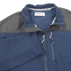 Orvis Jacket Mens Extra Large Blue Full Zip Mock Neck Fleece Outdoor Pockets