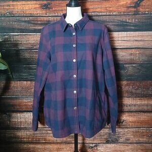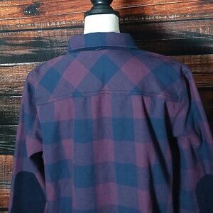 Orvis Jacket XL Fleece Lined Flannel Snap Front Purple Navy Checked Chore Coat