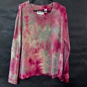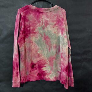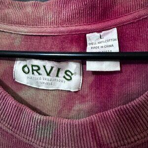 Orvis Khaki Red Sweater Cotton Tie Dyed Handmade Size Large Long Sleeve Crew