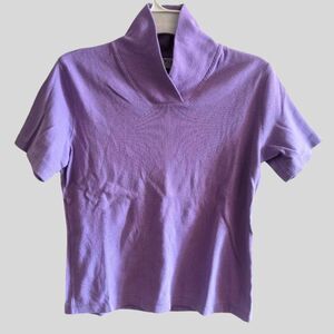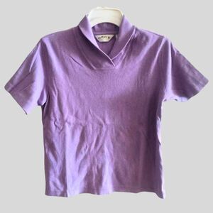 Orvis Knit Shawl Collar Top Women's Size Small Light Purple Cotton Stretch Tee