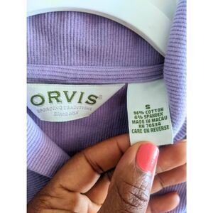 Elevate your everyday style with this Orvis women’s shawl collar knit top in a soft lavender purple. Size Small, designed with a 96% cotton / 4% spandex blend for breathable comfort and gentle stretch.
