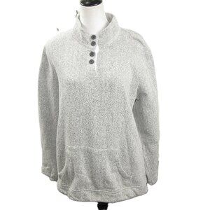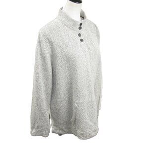 Orvis Light Gray Partial Button Mock Neck Pull Over Size Large