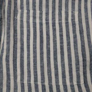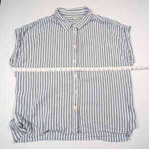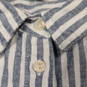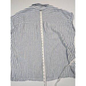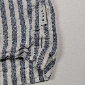Orvis Linen Blend Womens XL Shirt Blue Striped Coastal Nautical Boat Beach