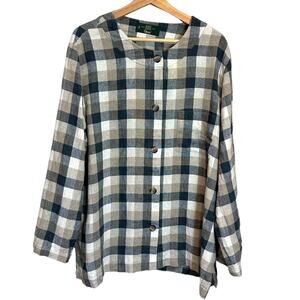 Orvis Linen Check Gingham Button Down Top Shirt Shacket Women's 18 XXL 2X 2XL